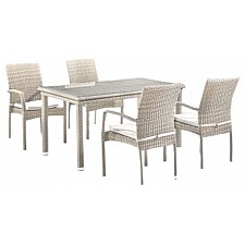 посадочных места - 4, сверху столешницы стекло закаленное, цвет - прозрачный, подушки в комплекте |