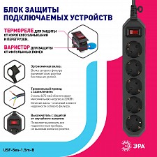 провод длиной 1,5 м., розетки с заземлением - 5 шт.