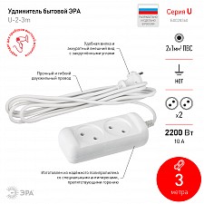 провод ПВС с сечением 2х1 мм2 длиной 3 м., розетки без заземления - 2 шт.
