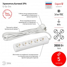провод ПВС с сечением 3х1 мм2 длиной 5 м., розетки с заземлением - 5 шт.