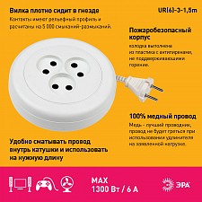 провод ШВВП с сечением 2х0,75 мм2 длиной 1,5 м. (в рулетке), розетки без заземления - 3 шт.