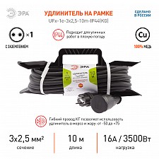 провод КГ с сечением 3х2,5 мм2 длиной 10 м. (на рамке), розетки с заземлением - 1 шт.