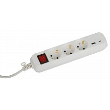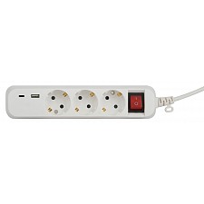 провод ПВС с сечением 3х0,75 мм2 длиной 3 м., розетки без заземления - 3 шт., 2 USB-порта (1 type A, 1 type C) |