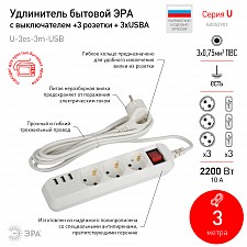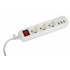 провод ПВС с сечением 3х0,75 мм2 длиной 3 м., розетки без заземления - 3 шт., 3 USB-порта (type A) |