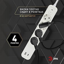 провод длиной 1,5 м., розетки с заземлением - 4 шт., 3 USB-порта (2 type A, 1 type C) |