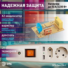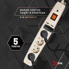 провод длиной 2 м., розетки с заземлением - 5 шт., 2 USB-порта