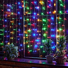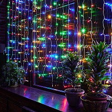 Занавес светодиодный с защитой IP44 работает при температурах от -20°C до +35°C, что позволяет использовать его как в помещении, так и на улице под навесом. Возможность соединения нескольких модулей помогает создавать масштабные световые композиции. Прозрачный провод делает монтаж максимально аккуратным и незаметным.